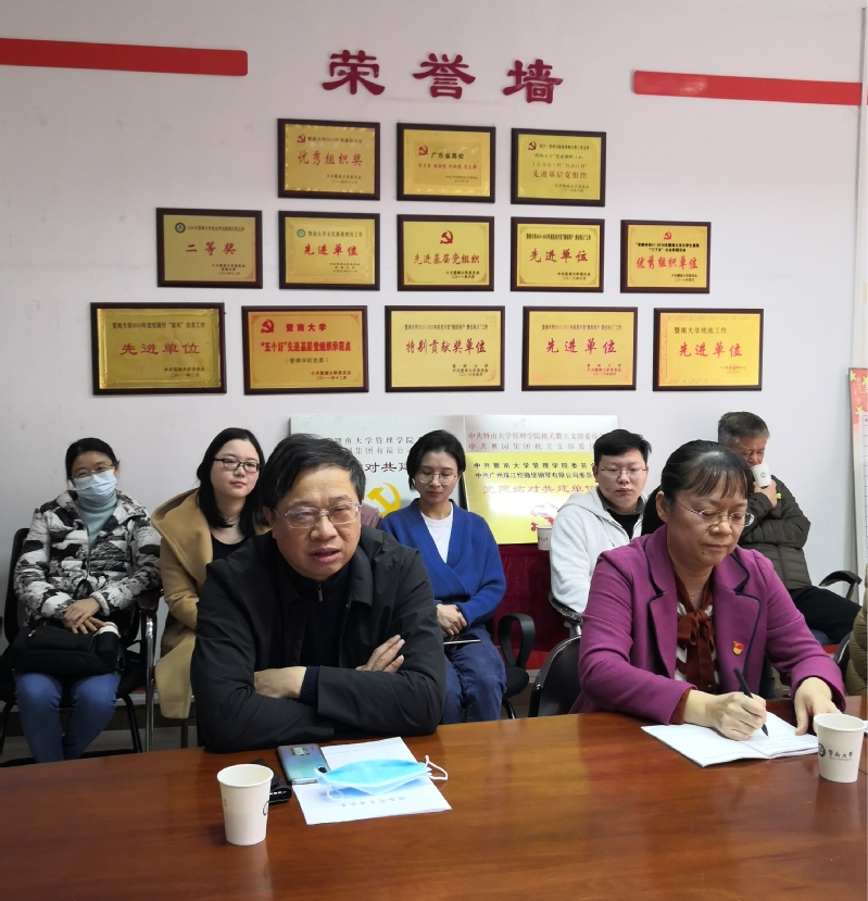 2020年12月23日下午2点半,管理学院会计学系党支部于管理学院204教室召开预备党员转正大会,大会讨论关于饶品贵、齐珺、陈莉3名同志申请转为正式党员。出席本次转正大会的有暨南大学校长宋献中,管理学院党委书记卫海英、党委副书记李杨、副院长朱滔、教工党总支书记杨远香以及各位支部成员。本次大会由支部书记黄微平老师主持。