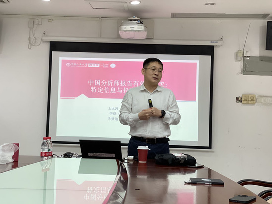 王玉涛教授首先从市场频发的“研报门”事件出发,引出了我国证券分析师报告有效性存疑这一重要命题,并就此命题介绍了相关的研究进展。但是,与分析师报告有效性存疑相矛盾的地方是我国分析师行业发展状况却仍然良好,本文则针对这一矛盾点展开研究,试图从投资者信息关注视角对我国证券分析师报告有效性进行解释。