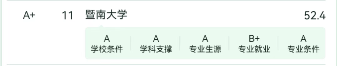 “会计学”评级:a ,全国338所高校上榜,暨南大学位列第10位。