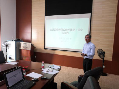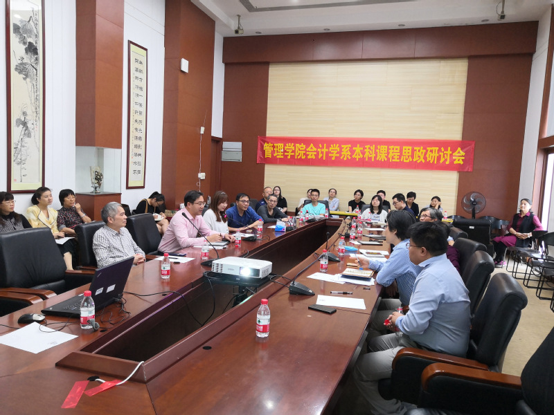 11月27日,会计学系教师深入学习贯彻习近平总书记重要讲话重要指示精神,在惠全楼520召开管理学院会计学系本科课程思政研讨会。会议由系支部书记黄微平副教授主持,暨南大学校长宋献中教授、管理学院院长黎文靖教授和会计学系教师参加会议。系支部书记黄微平副教授传达了暨南大学全面推进课程思政的指导思想。