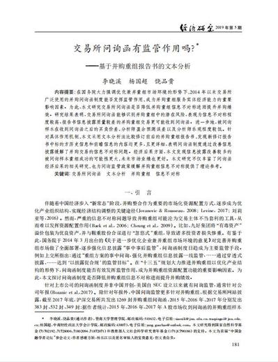 2022年8月,湖北省社科优秀成果奖评委会办公室公布第十三届湖北省社科优秀成果奖拟获奖成果名单,祝贺我院会计系教师李晓溪、饶品贵合作撰写的论文《交易所问询函有监管作用吗?——基于并购重组报告书的文本分析》荣获第十三届湖北省社科优秀成果奖二等奖。该论文于2019年5月在国内顶级学术期刊《经济研究》上正式发表。